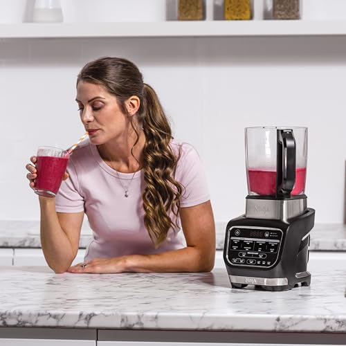 Ninja Foodi Mixer & Suppenbereiter, 10 Auto-iQ-Programme, 1,7L Glaskrug, heißer & kalter Mixer, integriertes Heizelement, Stampfer, Reinigungsprogramm & Bürste, 1000W, Schwarz HB150EU